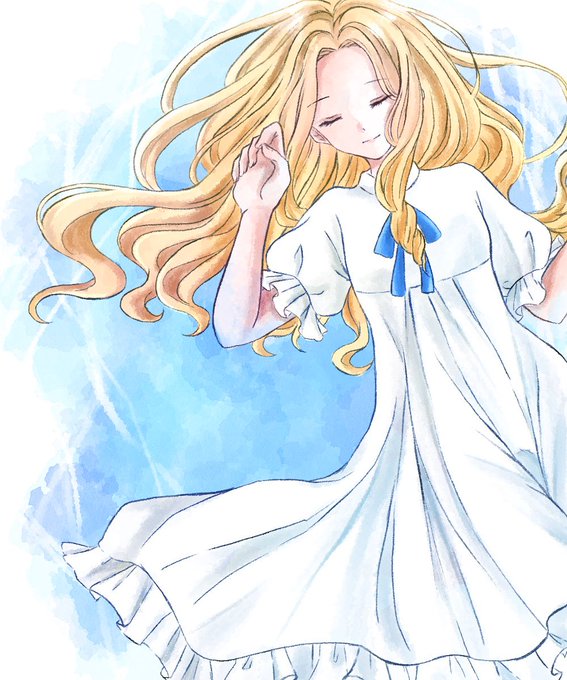 イラスト 思い出のマーニー ジブリ マーニー arata yokoyama ソロ 長髪 カメラ目線 highres 青い目 金髪 wide image 座る outdoors landscape scenic 修正版 interlocked fingers lake 女の子 ドレス 19x860 jp